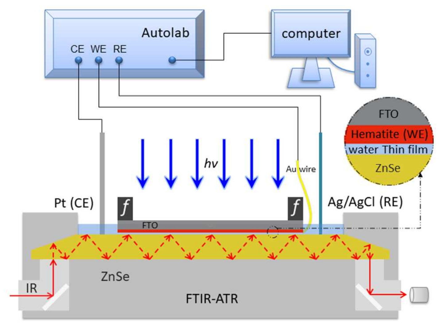 2. 光电化学体系原位光谱表征:包括原位光电化学红外光谱、差分电化学质谱-红外联用等。